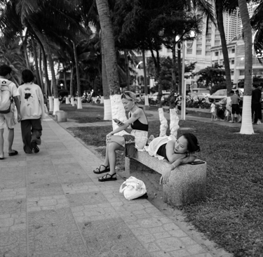 Girls in the Shade - A black and white photograph captured in Vietnam